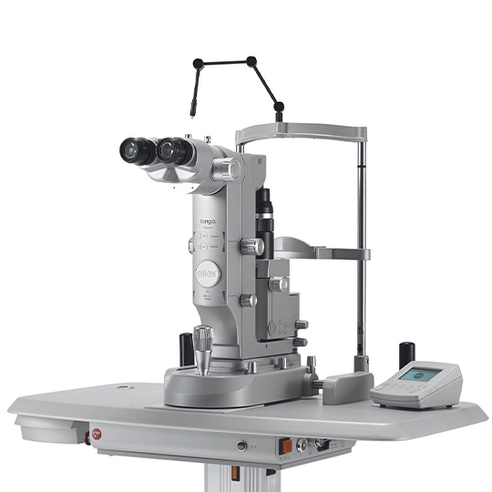 医師が診察時に患者様の眼を見る際に使用します。光を当てて、眼の断面図や眼の表面を観察します。眼科診療において、基本的に必要な機器です。